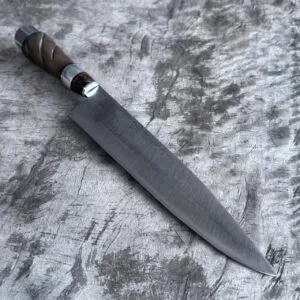 Va afilado y con su vaina de cuero auténtico.